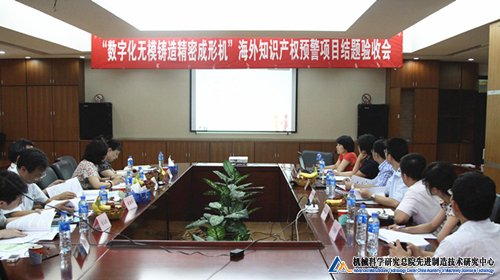 2012年7月11日下午,研究中心承担的“数字化无模铸造精密成形机”海外知识产权预警项目顺利通过结题验收。北京市知识产权局周砚副局长以及国家知识产权局、北京市知识产权局、北京市知识产权保护协会的专家出席了此次会议。与会专家审阅了项目结题报告,听取了项目执行情况汇报。经过质询答辩,专家们针对结题报告及项目汇报提出了全面中肯的意见和建议。经专家评议,项目按期完成了既定的工作目标及任务,同意结题。