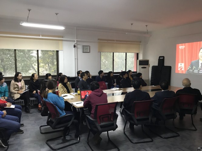 10月18日上午9点,研究中心党委分别组织在学清路办公和白石桥办公的党员群众收看党的十九大开幕会盛况。