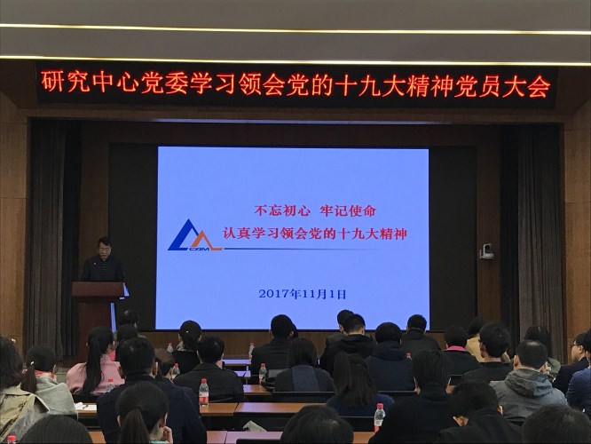 11月1日,研究中心党委召开党员干部大会学习领会党的十九大精神。研究中心党委委员、中层干部、党支部书记等50余名党员干部参加了会议,会议由半岛官网入口网址大全部部长刘帅主持。