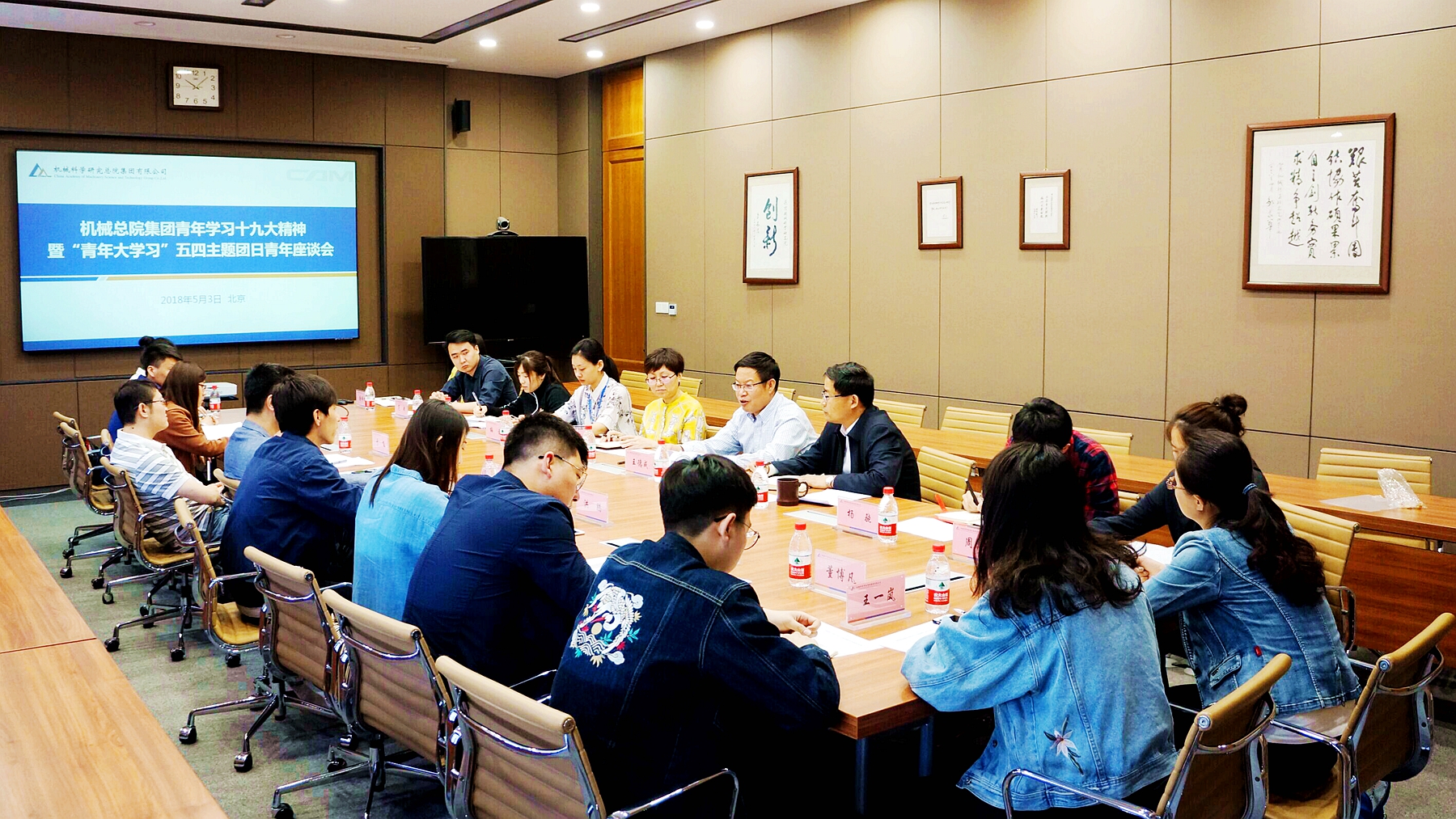 2018年5月3日,机械总院集团青年学习十九大精神暨“青年大学习”五四主题团日座谈会在京召开,集团党委书记、董事长王德成,党委委员、副总经理单忠德,团委书记李东方以及青年员工代表19人出席了本次会议,会议由单忠德副总经理主持。