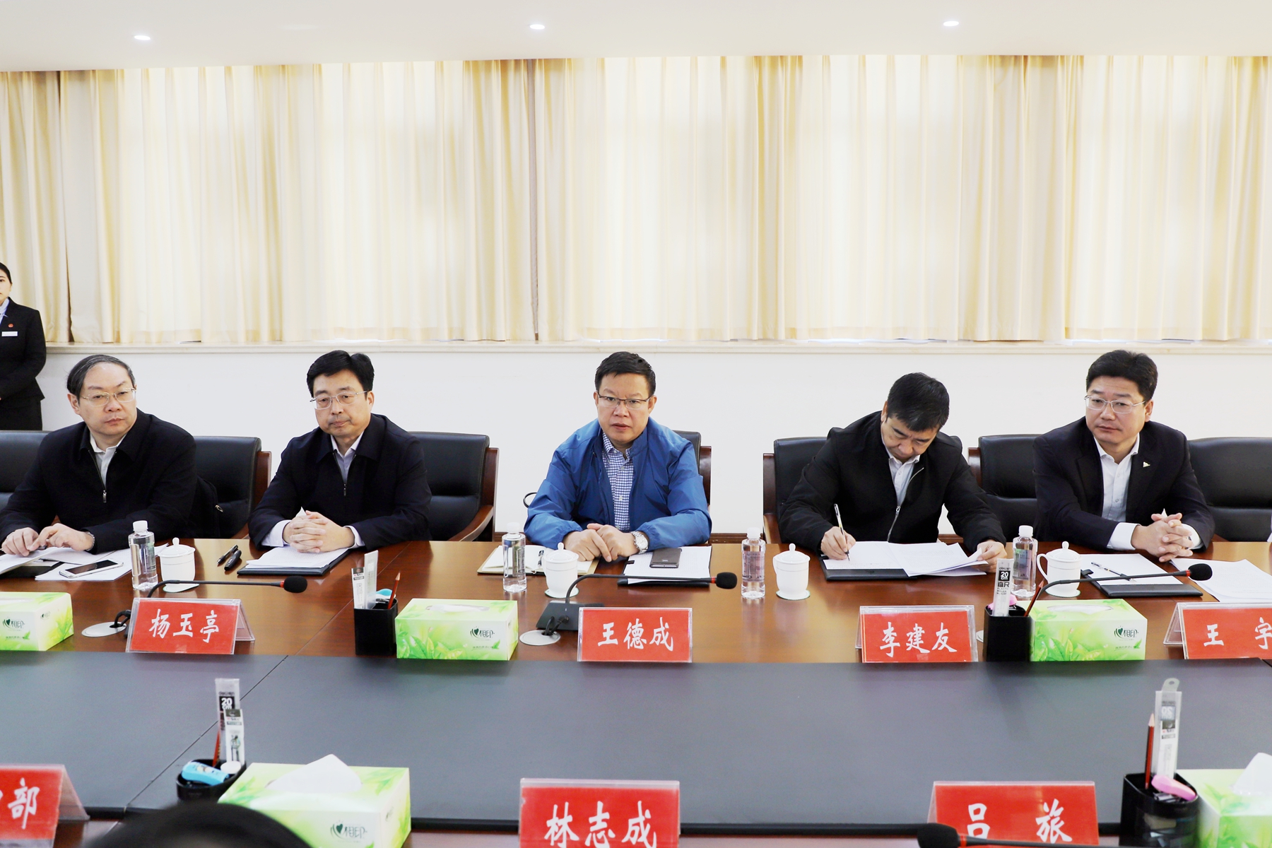 在县委县政府主要负责人座谈会上,王德成对新县脱贫攻坚以及定点帮扶等工作成效给予了充分肯定。他指出,通过实地调研,看到了老区新县党员干部干事创业的热忱和良好的精神风貌,充分感受到了老区群众致力脱贫、奔赴小康的迫切心情和美好愿望,这也增强了集团定点扶贫工作的动力和创新发展好央企的决心与干劲。下一步,集团将全力认真落实好定点帮扶新县三年行动计划,确保各项工作落到实处、取得实效。对新县提出的有关职业技术培训、智能制造等方面的帮扶建议和请求,双方要加强沟通对接,尽快确定方案,加快推进落实。同时,要围绕乡村振兴战略,结合集团实际,找准选好帮扶举措,及时拟定工作规划,助力老区乡村振兴。