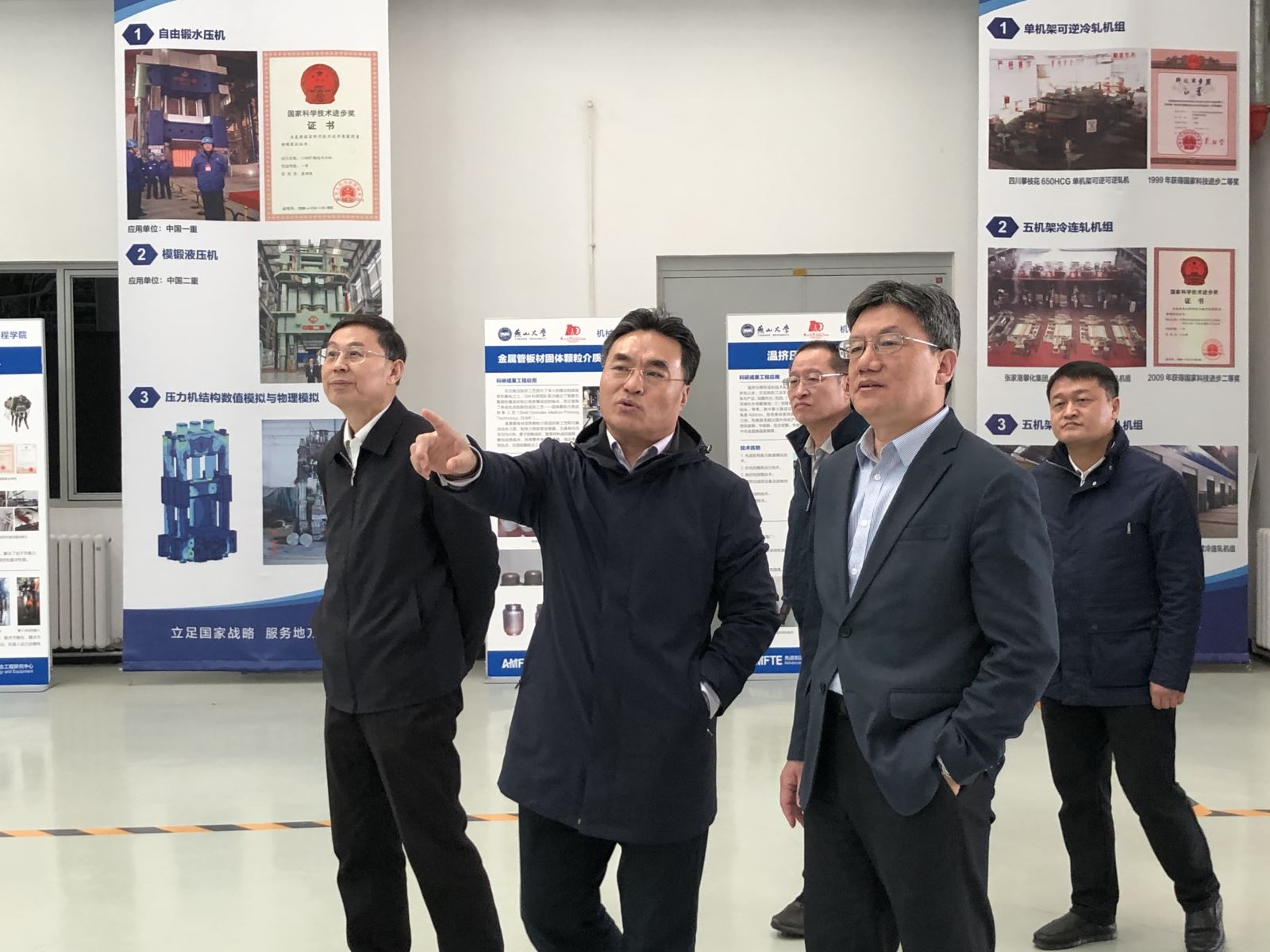 随后王振林董事长一行在燕大赵永生副校长、原副校长孔祥东等的陪同下,参观了燕大特种运载装备研究中心、亚稳材料制备技术与科学国家重点实验室、国家冷轧带装备及工艺工程技术研究中心、先进制造成形技术及装备国家地方联合工程研究中心等。